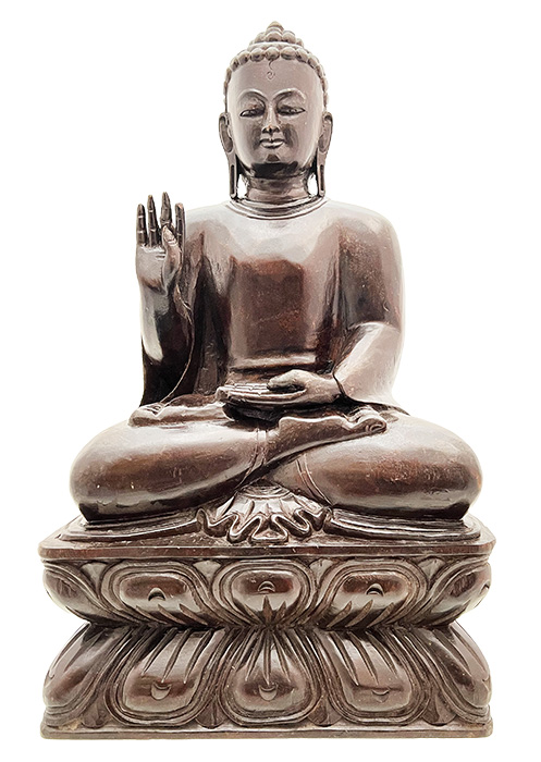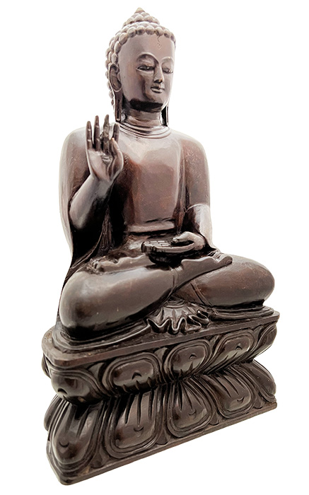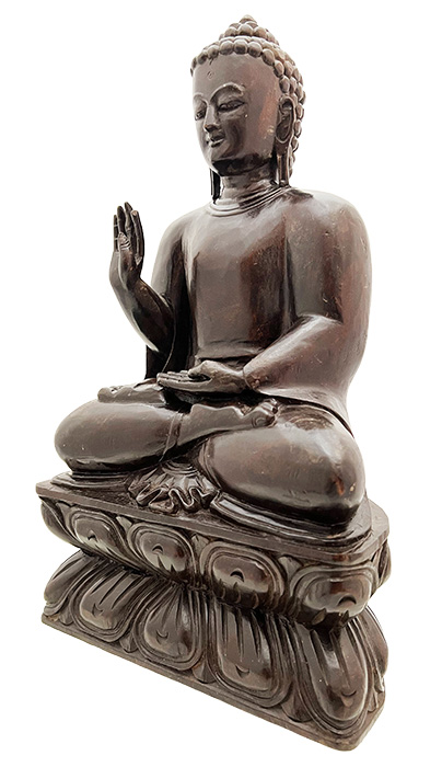Diese Statue ein auf traditionelle Weise handgefertigtes Unikat aus Holz des Bodhibaums Herstellungsort ist die Himalayaregion Nepal. Jede dieser Statuen unterscheidet sich von allen anderen durch verschiedene kleine Unterschiede, jedoch haben allegemeinsam, dass sie mit viel Liebe gemacht sind.